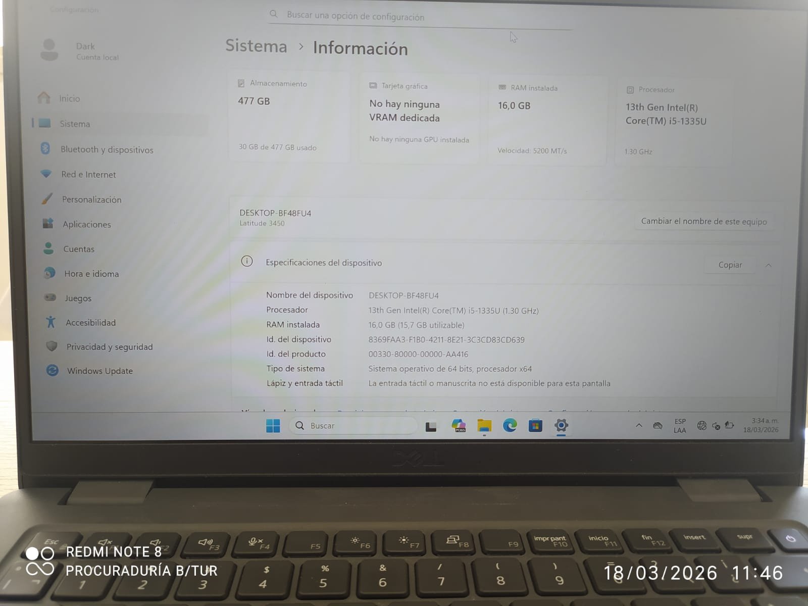 Equipo:Laptop DELL LATITUDE 3450